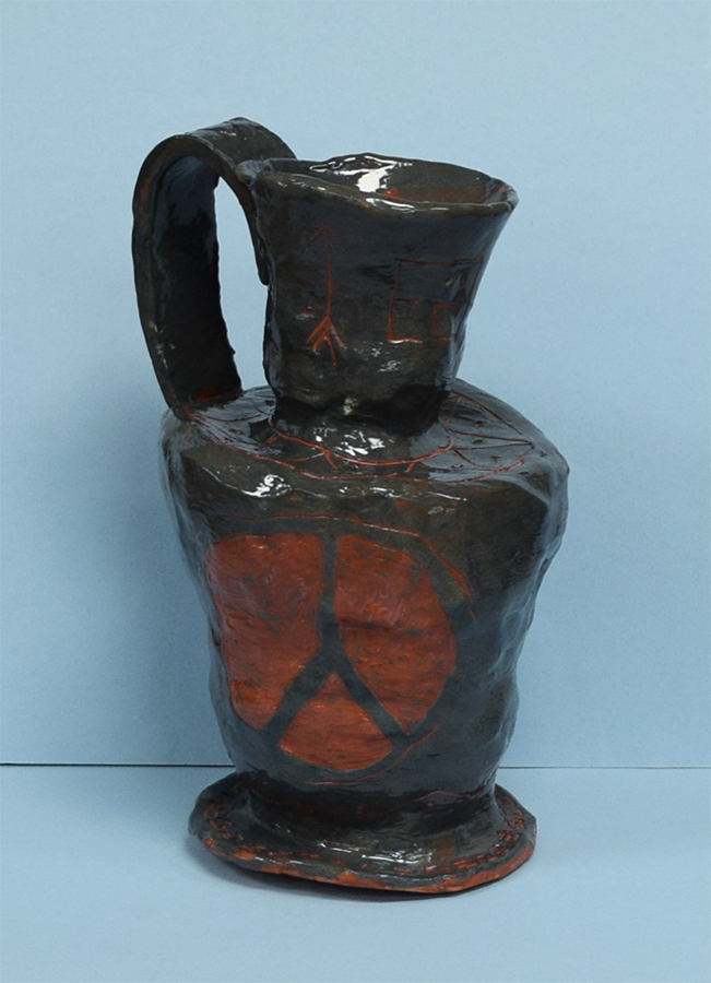 Scroll down to see the variety of ceramic Greek forms created by these young artists with red earthenware clay and the coil technique. After constructing their forms, these artists applied jet black engobe and, using a sgraffito technique, created patterns and images by scratching away the engobe to reveal the red clay underneath. When their finished pieces were bisque fired to cone 05, the artists applied a clear transparent glaze before the glaze firing.